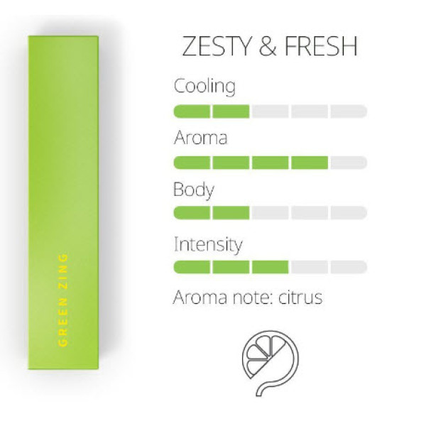 Стики Heets Green Zing – это самый настоящий весенний аромат, который вы ощутите сразу же, едва приоткрыв пачку. Табачная основа, словно остатки снега на слепящем солнце, отходит на задний план сама по себе, освобождая путь душистым цитрусовым ноткам с проступающим травяным оттенком. Вся эта композиция обдувается зимним ветром, выраженного через ментол, а после каждого допаренного стика Green Zing вновь наступает лето.